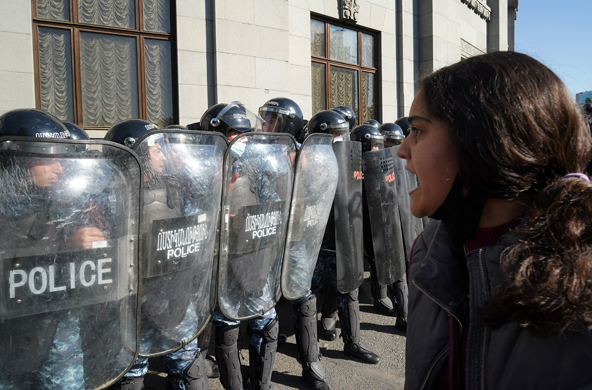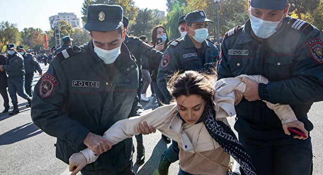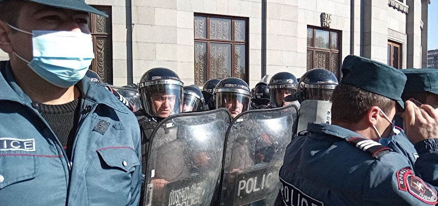 Başbakan Nikol Paşinyan’ın Dağlık Karabağ’da Azerbaycan karşısında yenilgiyi kabul etmesine karşı çıkan protestocular, hükümetin istifa etmesini istedi.