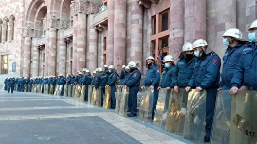 Ermenistan'da Dağlık Karabağ anlaşmasına karşı büyüyen öfke dinmiyor. Erivan'da çok sayıda protestocu bugün de sokaklara döküldü. Polis ve muhalif göstericiler arasında çatışmaların yaşandığı ifade edilirken onlarca kişinin de gözaltına alındığı kaydedildi. Erivan'da günün erken saatlerinde polis ve özel harekat birimleri şehir merkezinde konuşlandırıldı. Protestoları önlemek için görevlendirilen askerlerle halk yüz yüze geldi.