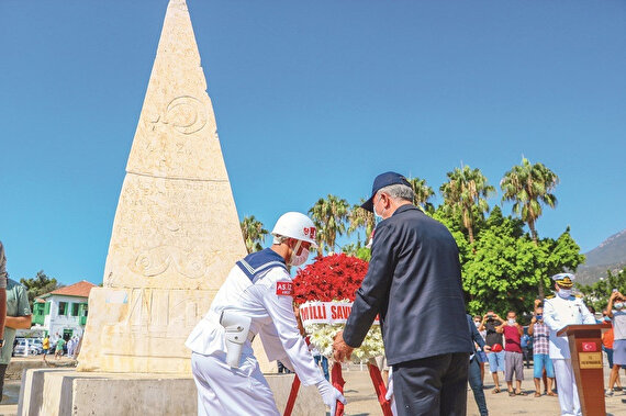 Yunanistan’ı kışkırtıp, uçak gemisi Charles de Gaulle’u Doğu Akdeniz’e gönderme planı yapan Fransa’ya, 1917 yılında uçak gemisi batıran “Topçu Yüzbaşı Mustafa Ertuğrul Aker” ile mesaj verildi. Milli Savunma Bakanı Hulusi Akar ve komutanlar, Kaş’a giderek kahraman yüzbaşıyı andı.