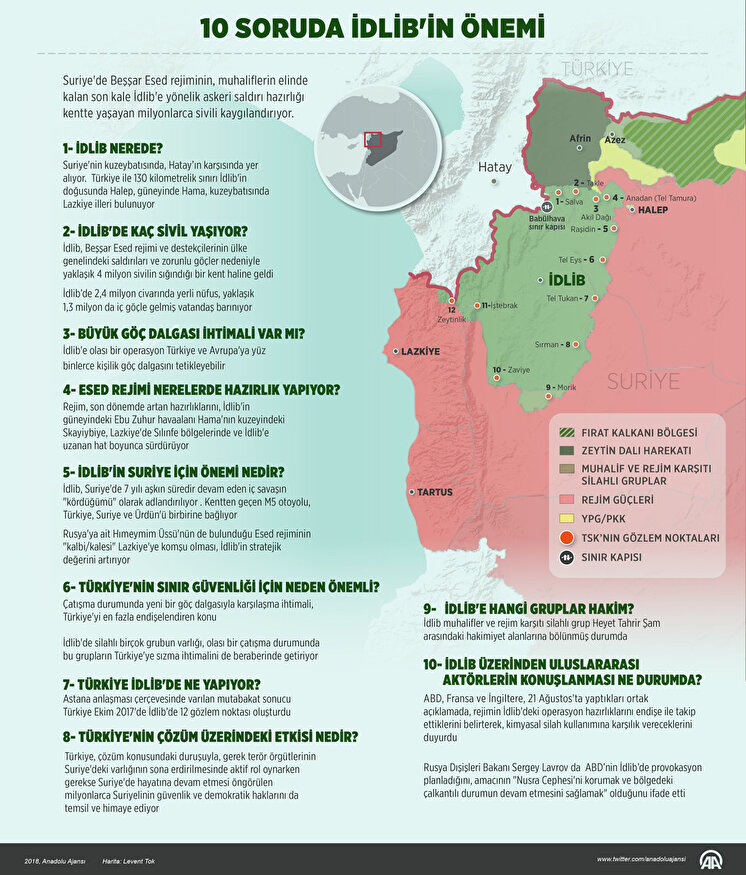 - Ekim ayı başından bu yana İdlib Gerginliği Azaltma Bölgesi'nde Esed rejimi askerleri, İran destekli yabancı terörist gruplar ve Rusya'nın saldırılarında yaklaşık 62 bin sivil yerlerinden edildi.