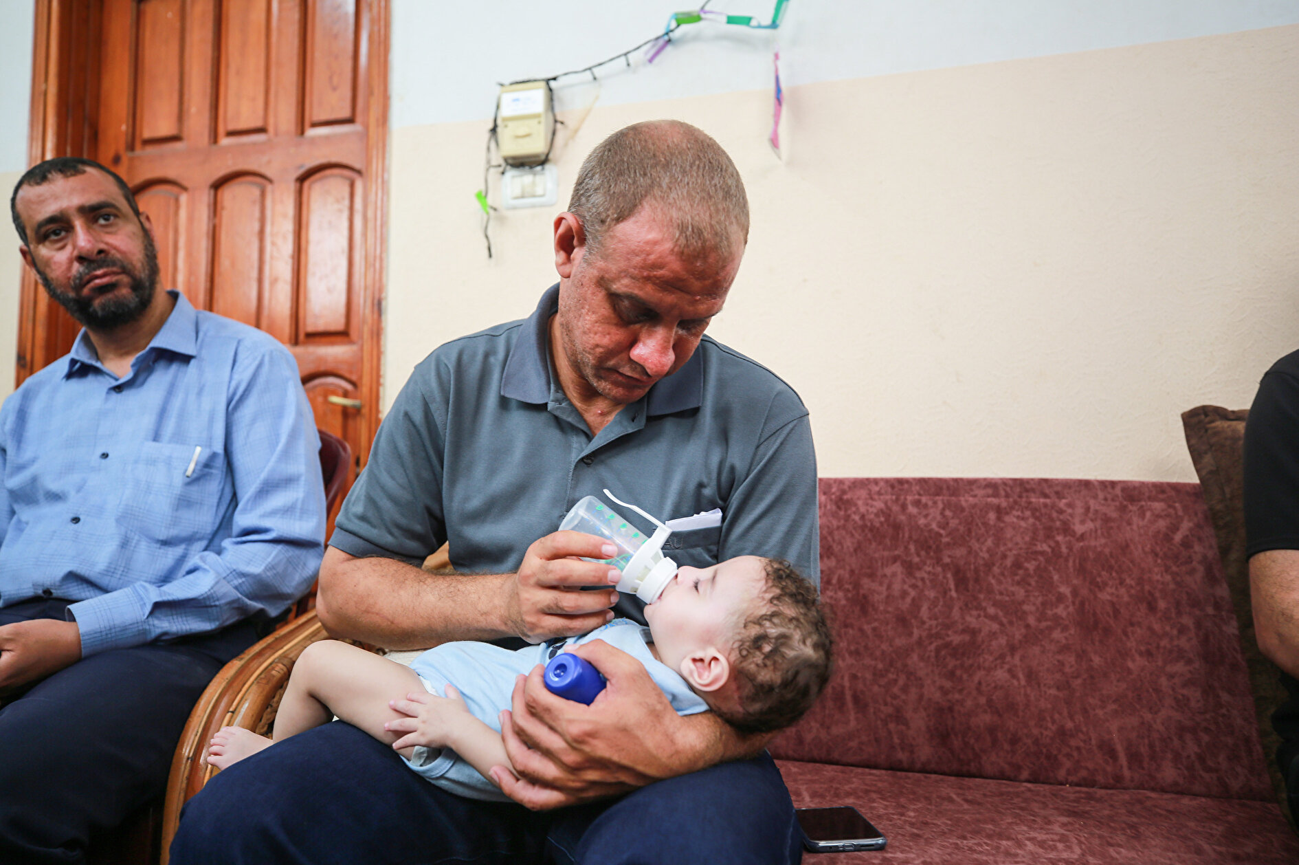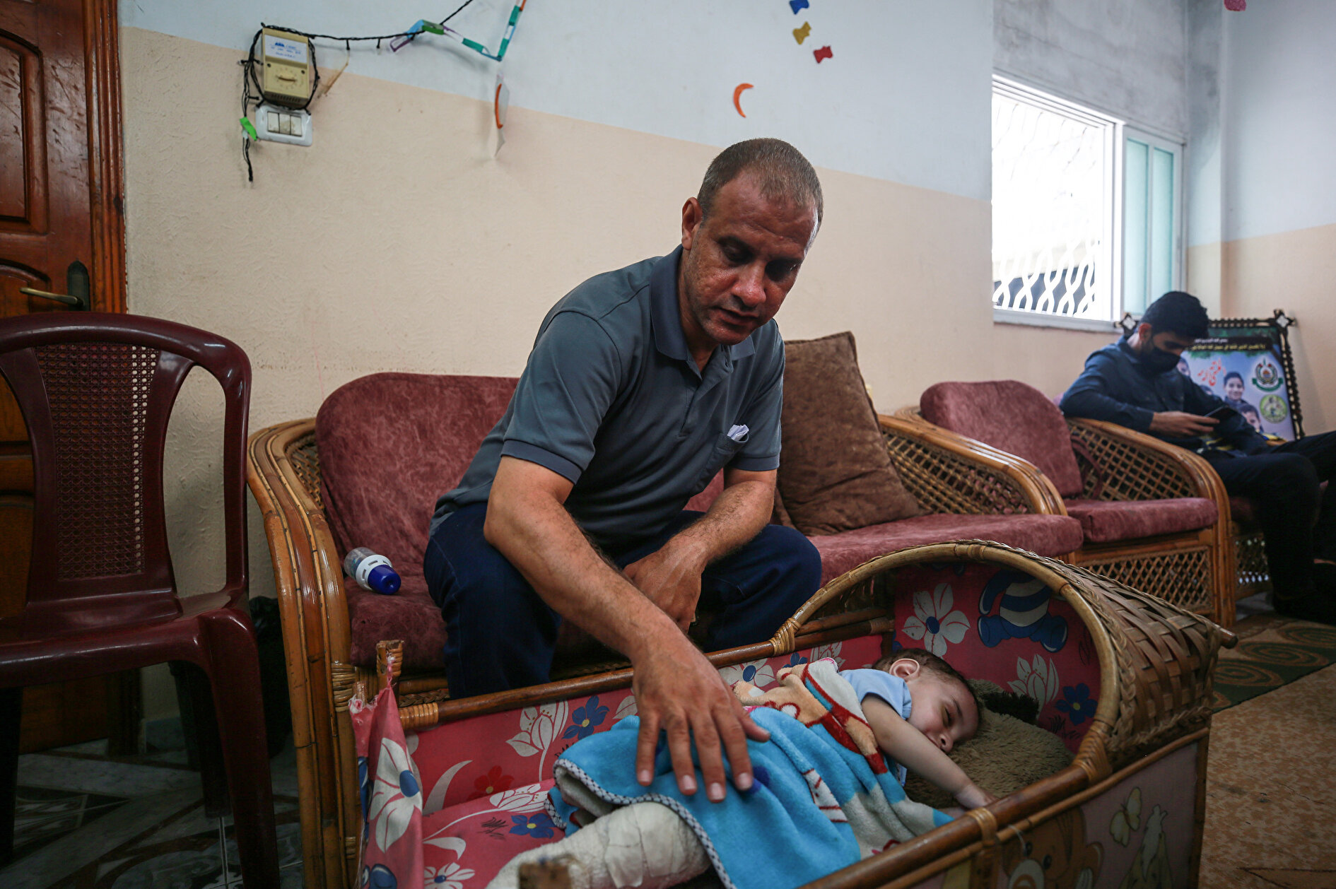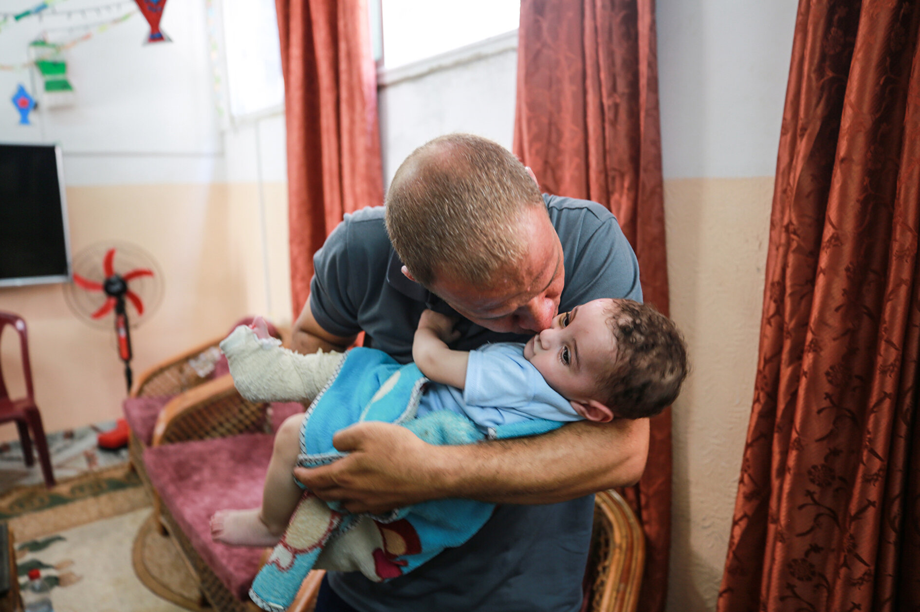 Eşi ve 4 çocuğunu kaybetmesine rağmen metanetini korumaya devam eden Gazzeli baba, oğlu Ömer'in tüm ihtiyaçlarını karşılamaya ve annesinin yokluğunu hissettirmemeye çalışıyor.
