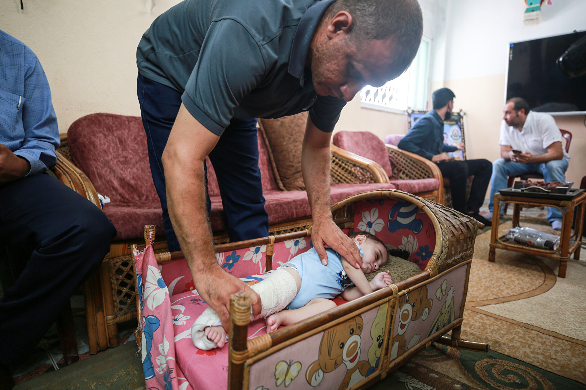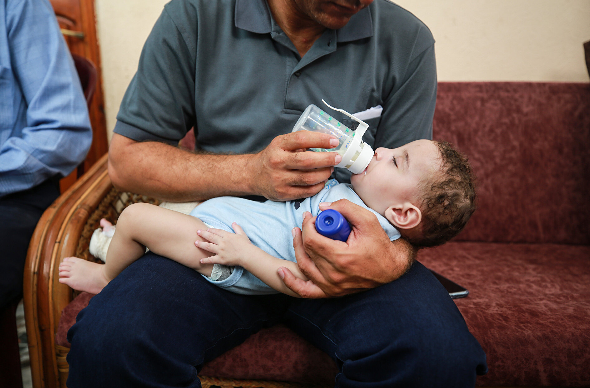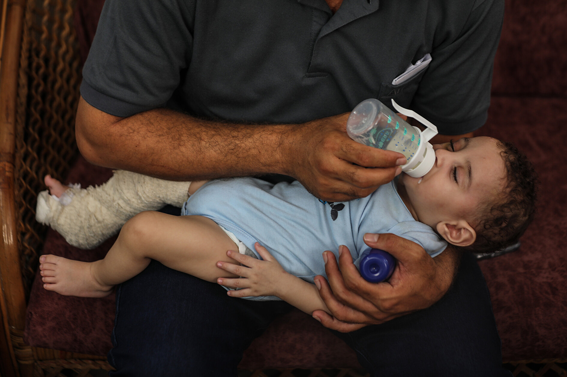 Eşi ve 4 çocuğunu kaybetmesine rağmen metanetini korumaya devam eden Gazzeli baba, oğlu Ömer'in tüm ihtiyaçlarını karşılamaya ve annesinin yokluğunu hissettirmemeye çalışıyor.