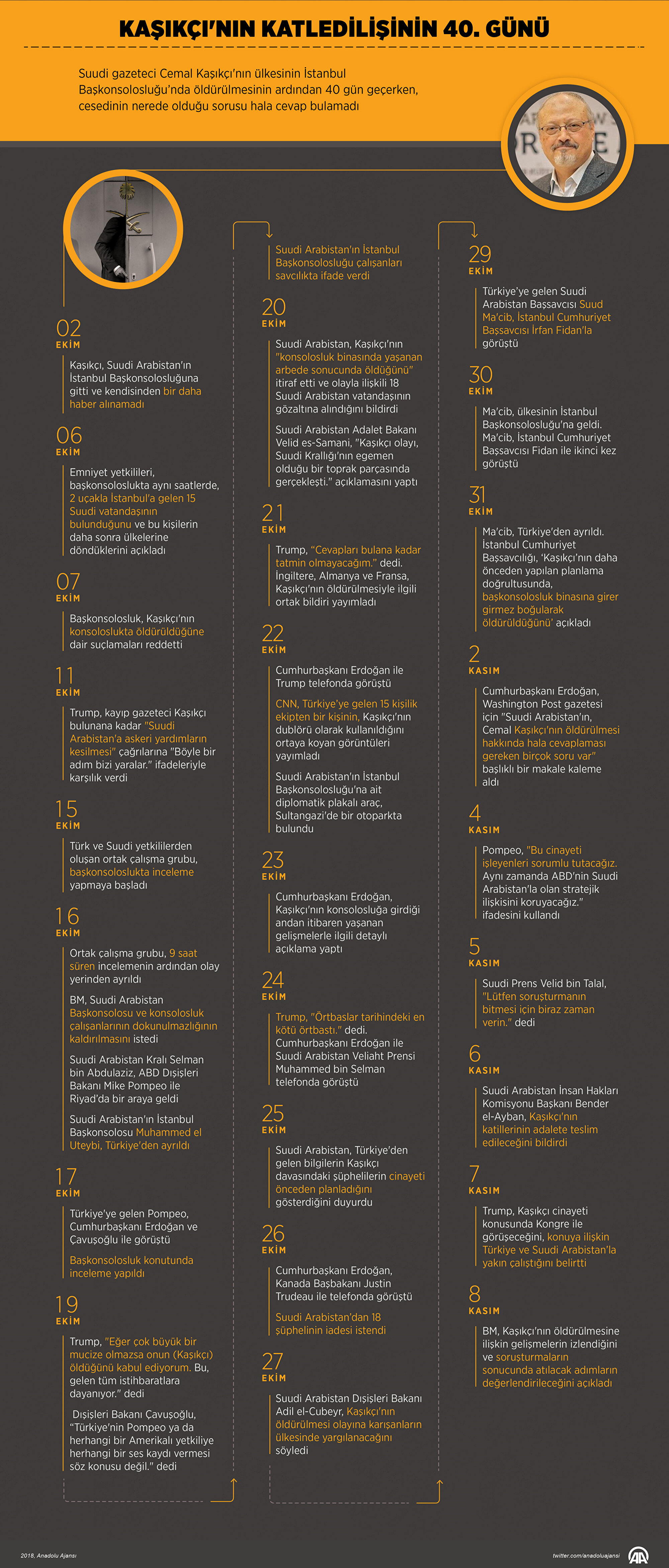 Cumhurbaşkanı Recep Tayyip Erdoğan, Kaşıkçı'nın öldürülmesi ile ilgili 10 Kasım'da yaptığı açıklamada, kayıtların, konuşmaların, Suudi Arabistan, ABD, Almanya, Fransa ve İngiltere'ye dinlettirildiğini açıklamıştı.