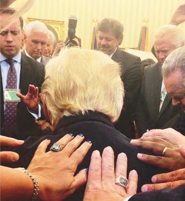 Temmuz ayında Evanjelik liderlerin Beyaz Saray’ı ziyaretinde çekilen bir fotoğraf gündeme bomba gibi düşmüştü. Fotoğrafta, Oval Ofis’te kabul edilen Evanjeliklerin Trump’ın omuzlarına ellerini koyarak, oluşturdukları bir çember ile dua seansı düzenledikleri görülüyordu. Fotoğrafı sosyal medya hesabından paylaşan isim ise Johnnie Moore’du. Başkan Yardımcısı Mike Pence de dua seansına katılan isimlerdendi. Pence’in haftada bir kez benzer dua seanslarını Beyaz Saray’da düzenlediği belirtiliyor.