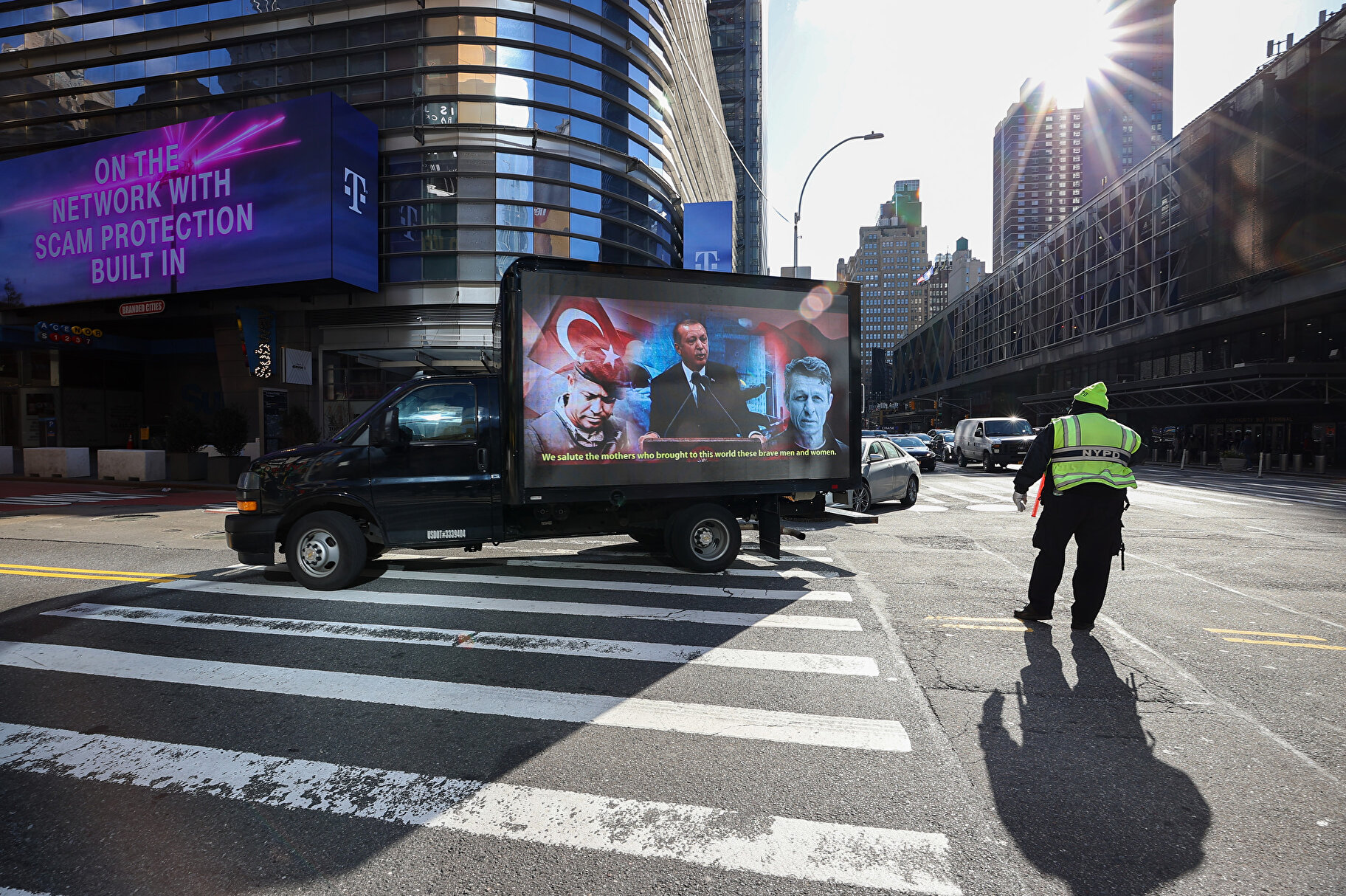 Dijital ekranlı kamyonetin 3 gün boyunca günde 8 saat Times Meydanı'nda dolaşacağı kaydedildi. FETÖ mensuplarına ait bir grup tarafından, Times Meydanı'na yakın 42. sokak ile 8. Cadde köşesindeki dijital ekrana Türkiye'yi karalamaya yönelik verilen reklam, Türk Amerikan toplumunun şiddetli tepkisine neden olmuştu.