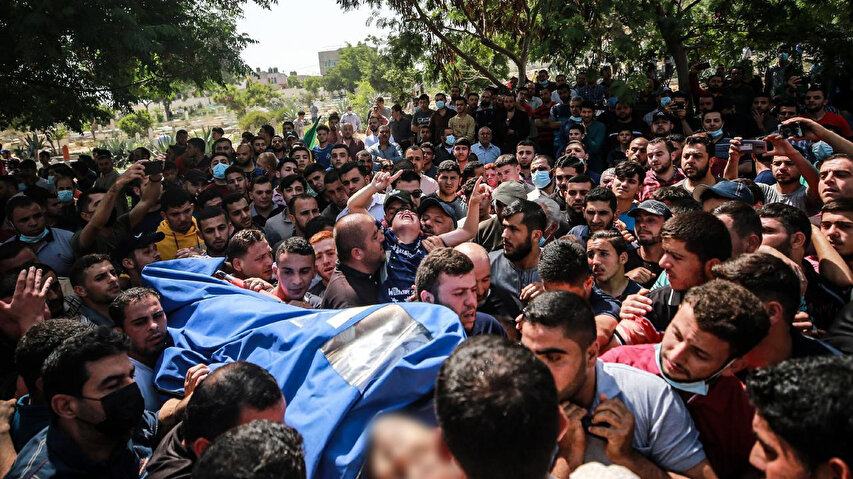 Küçük çocuğun bu acılı vedası, cenazeye katılan diğer Filistinlileri de gözyaşlarına boğdu.