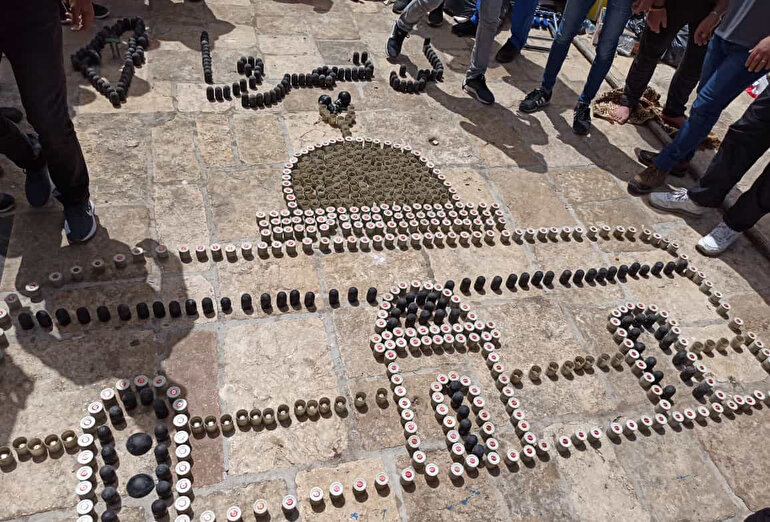 İşgalci İsrail güçleri, Mescid-i Aksa'da bulunan Filistinlilere ses, gaz ve göz yaşartıcı bombalarla saldırmıştı. Saldırının öğle saatlerine doğru bir süre durmasıyla Mescid-i Aksa'da biriken kapsüller vahşetin boyutlarını gösterdi.Filistinliler işgalci İsraillilerin Kudüs'te attığı mermilerin kovanlarından 'Bizi aşamayacaksınız' yazdı.