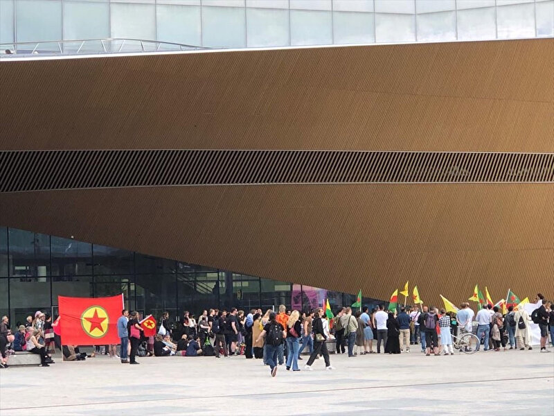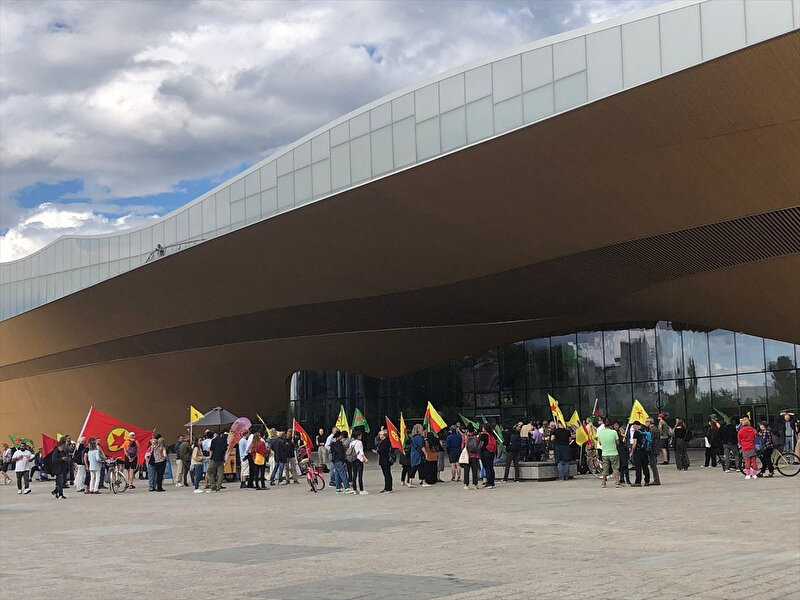 Finlandiya Meclisi'nin karşısında, Oodi Kütüphanesi'nin önünde toplanan terör örgütü yandaşları, Finlandiya Cumhurbaşkanı Sauli Niinistö ve Dışişleri Bakanı Pekka Haavisto aleyhinde sloganlar attı.