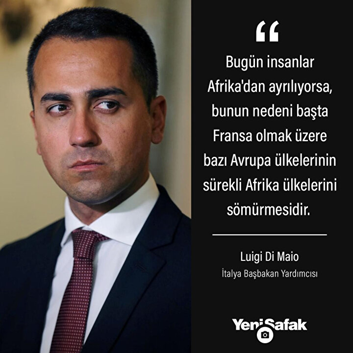 Pazar günü konuşan Di Maio Fransa'nın Afrika politikaları nedeniyle Avrupa Birliği'nin yaptırım uygulaması gerektiğini söyledi ve ekledi: