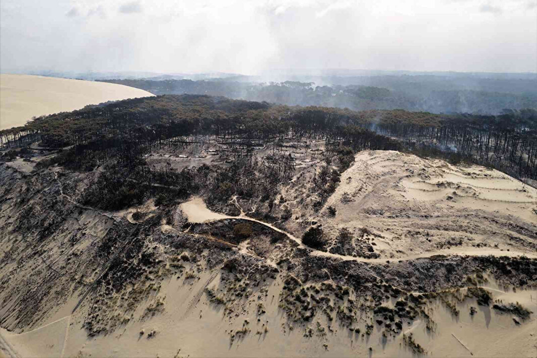 Arcachon Körfezi bölgesindeki La Teste-de-Buch’taki yangında şu ana kadar 7 bin, Landiras kasabasında ise 13 bin 800 hektar alan küle döndü.