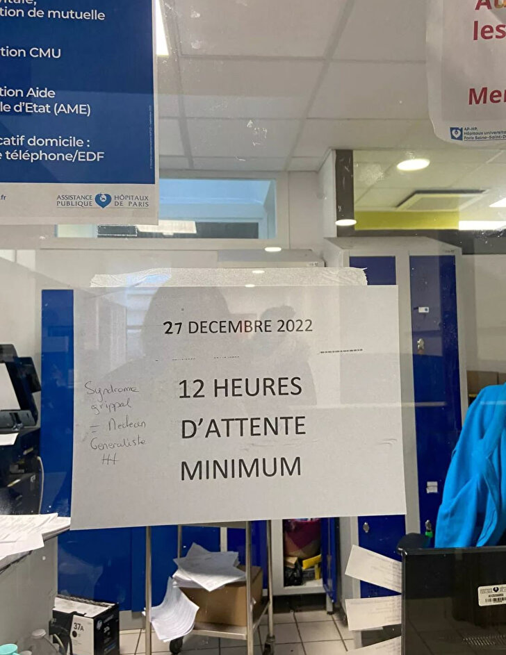 Ülkenin Val-d'Oise vilayetinde Gonesse Hastanesinde diyabetoloji bölümünde hemşire olarak çalışan Lina Nejjari, hastanelerin acil servislerinde bekleme sürelerinin 5 saati geçtiğini, öncelikli başka vakalar olduğunda hastanın 10 saat bekleyebileceğini ifade etti.