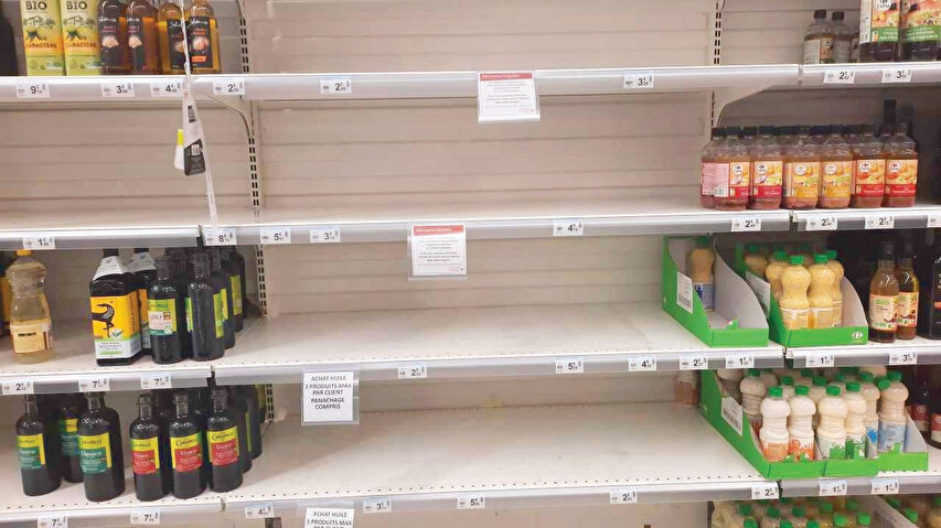 Avrupa ülkeleri, Rusya’nın Ukrayna’yı işgalinden bu yana, ayçiçeği yağı ve un başta olmak üzere bazı temel gıda maddelerinde ciddi krize tanık oldu. Bu krizden etkilenen ülkelerin başında ise Fransa geliyor. Ülkede market raflarında un ve sıvı yağ başta olmak üzere birçok ürünü bulmak neredeyse imkansız. Ürün azlığı nedeniyle de kısıtlı satış uygulamasına geçildi. Un ve yağ kısıtlamalı ürünlerin başında geliyor.
