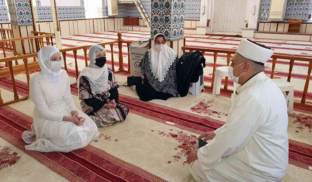 İlçe merkezindeki Yeni Sinan Camiinde Diyanet İşleri Başkanlığının yetkisi ile İmam Hatip Bilal Ekinci tarafından düzenlenen ihtida merasimi ile Müslüman olan ve Türk ismi alan anne Sandrine ve kızı Rebecca’ya Kur’an-ı Kerim ile İslam dini ile ilgili temel bilgilerin bulunduğu çeşitli kitaplar hediye edildi.