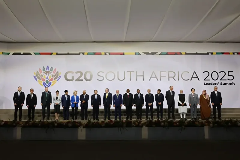 Johannesburg Expo Center'da devam eden zirvenin "Kimseyi Geride Bırakmadan Kapsayıcı ve Sürdürülebilir İktisadi Büyüme: Ekonomilerin İnşası, Ticaretin Rolü, Kalkınmanın Finansmanı ve Borç Yükü" başlıklı oturumunun ardından aile fotoğrafı çekimine geçildi.
