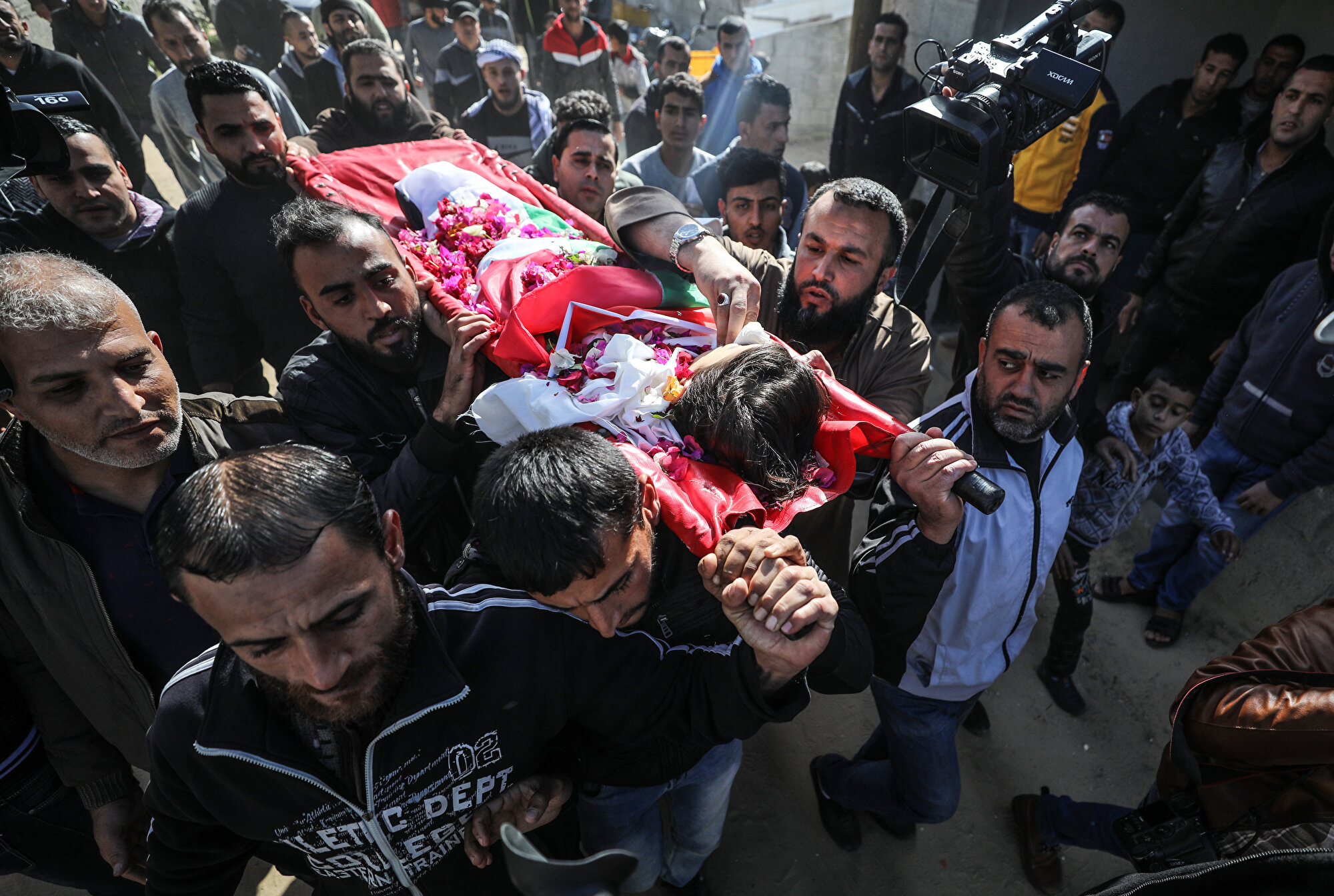 İsrail işgal güçlerinin Gazze Şeridi'nin güneyindeki Han Yunus kentinin doğu sınırında cuma günü babasıyla beraber katıldığı gösterilere saldırısında yaralanan ve dün şehit düşen Ahmed'in naaşı, Han Yunus kentindeki Nasır Hastanesi'nden teslim alınarak evine getirildi.