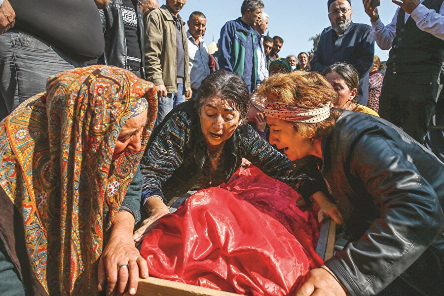 Ermenistan'ın balistik füzelerle katlettiği 13 sivilden 8'i toprağa verildi. Cenaze töreninde gözyaşları sel oldu. Ölenler arasında yer alan biri 10 aylık, diğeri 1 yaşında 2 kız çocuğu da defnedildi.