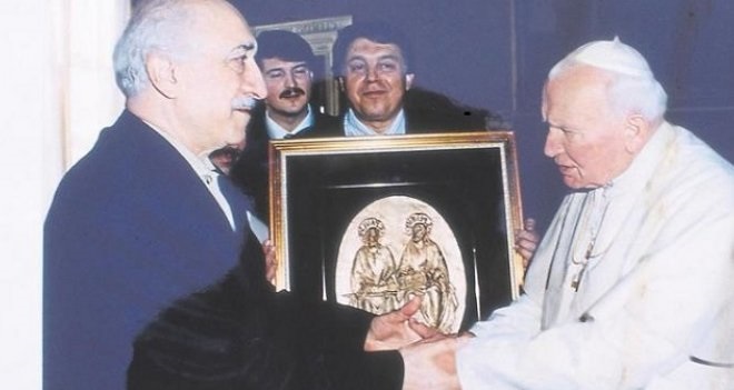 Papa 2. Jean Paul tarafından 'gizli kardinal' olarak atanan FETÖ elebaşı Fetullah Gülen'in 1996 yılından itibaren yayın organları üzerinden 'misyonerlik' mesajları verdiği ve Papa'nın elini öpen Zaman Gazetesi'nin eski sahibi Alaaddin Kaya aracılığıyla manşetlerden Rum Fener Patrikhanesi'nin PR'ını yapmış olduğu ortaya çıktı.