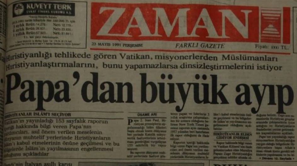 Zaman Gazetesi'nin 1990 yıllarından itibaren Vatikan'a yönelik olarak eleştirel bir dil takındığı biliniyor. Bu kapsamda, 22 Nisan 1990'da yer verilen '