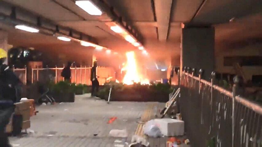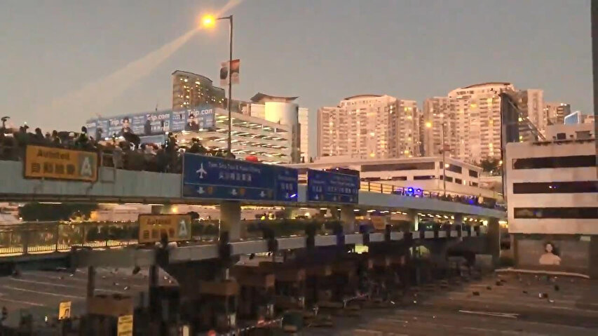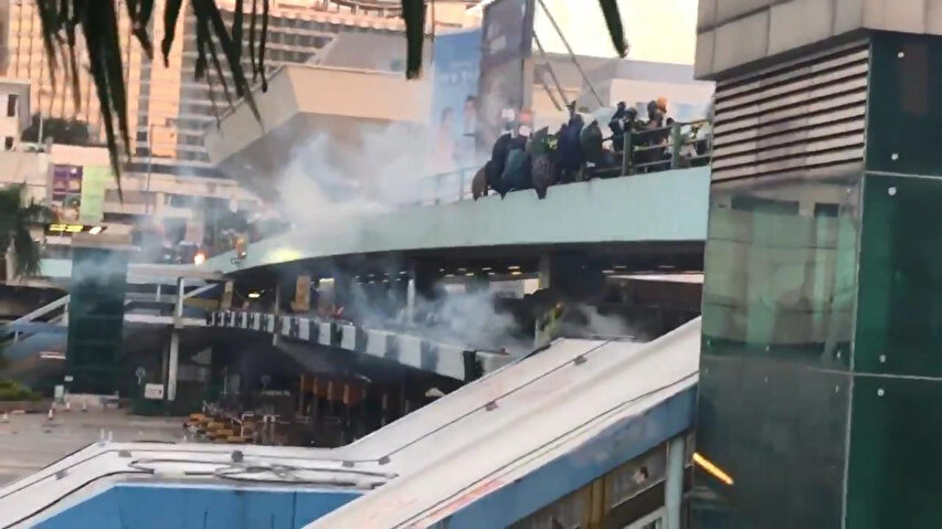 - Öte yandan, eylemcilerin Hung Hom bölgesindeki bir köprünün üzerinde barikat kurduğu ve ateşe verdiği görüldü.