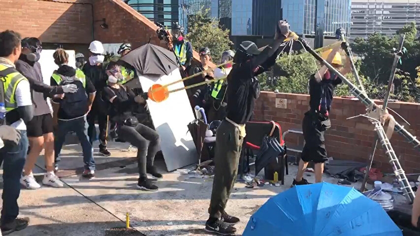 Hong Kong’da gösteriler devam ediyor. Daha önce eylemcilerin ok ve yay kullandıkları, bambudan inşa ettikleri mancınık ile polise kiremit attıkları kameralara yansımıştı. Yerel medya, bir sağlık görevlisinin bacağından ok ile vurulduğunu açıkladı. Sosyal medyada paylaşılan görüntü ve fotoğraflarda, sağlık görevlisinin bacağının arka kısmından ok ile vurulduğu görüldü.