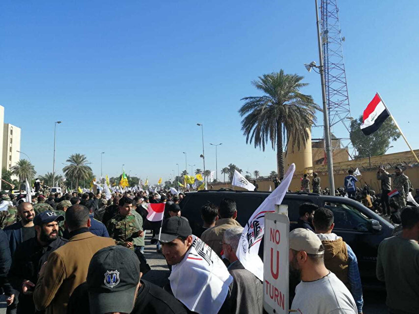 - Protestocular, Bağdat'ta hükümet binalarının bulunduğunu korunaklı Yeşil Bölge'deki ABD elçiliğinin kapısını kırdı.