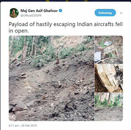 Pakistan Ordusu Sözcüsü Tüm General Asif Ghafoor, Muzzaffarabad bölgesine yapılan hava saldırısında hiçbir altyapının zarar görmediğini ve ölü ya da yaralı olmadığını duyurdu. Hindistan uçaklarının, sınırı yaklaşık 5 kilometre geçtiğini kaydeden Ghafoor, Pakistan Hava Kuvvetlerinin hızlıca Hindistan uçaklarını kovalayarak sınırın ötesine geri gönderdiğini duyurdu.