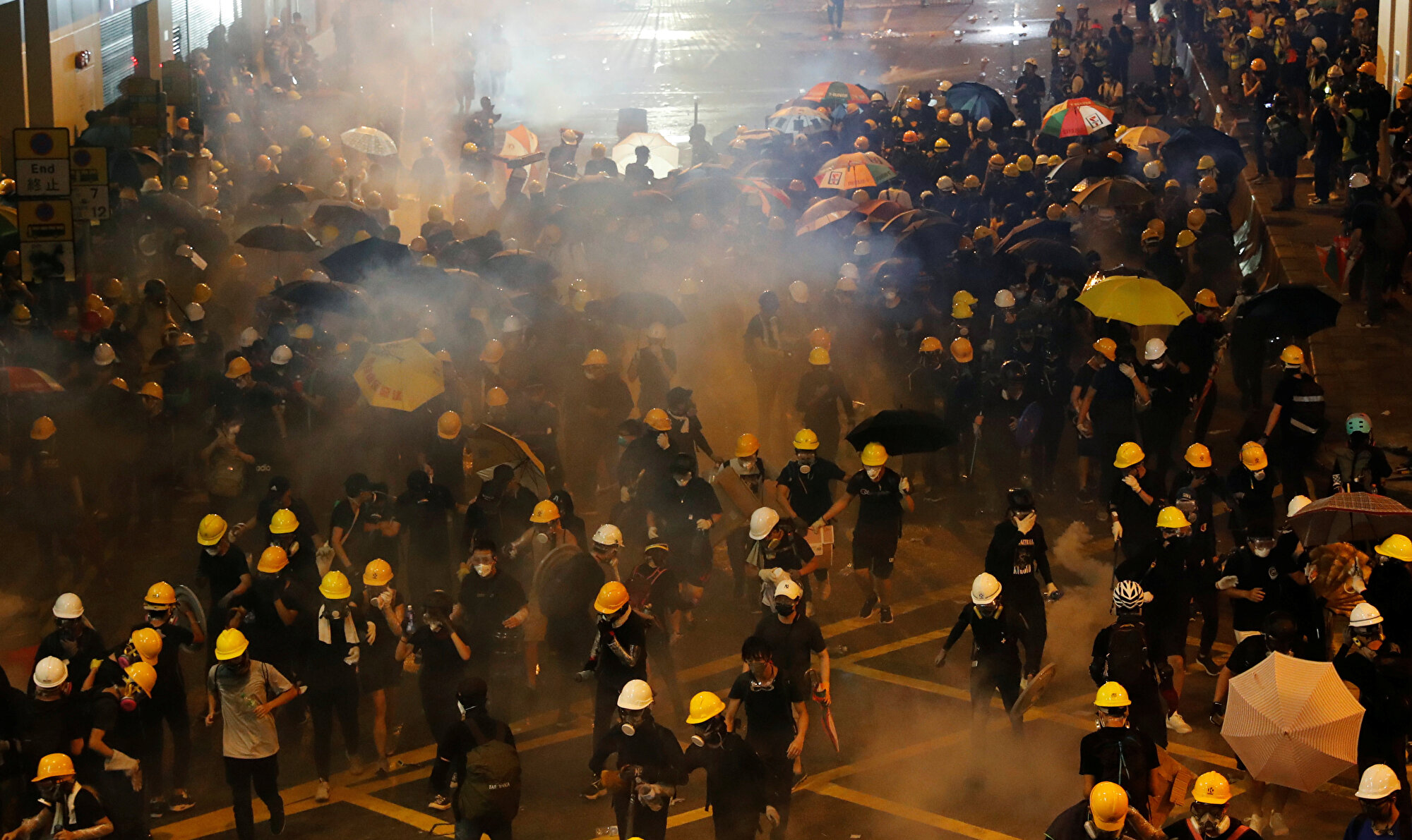 On binlerce Hong Konglu, tartışmalı Çin'e iade tasarısının iptali ve emniyet güçlerine bağımsız soruşturma talebiyle kentteki polis merkezine yürüdü. Hükümet binalarına yaklaşan protestocular buralarda barikat kurdu. Polis göstericilere göz yaşartıcı gaz ve plastik mermilerle müdahale etti. Göstericiler Pekin merkezi yönetiminin irtibat ofisine ulaştı.