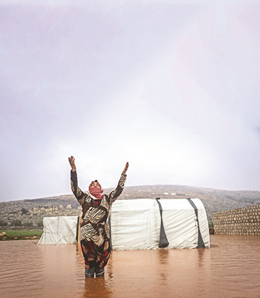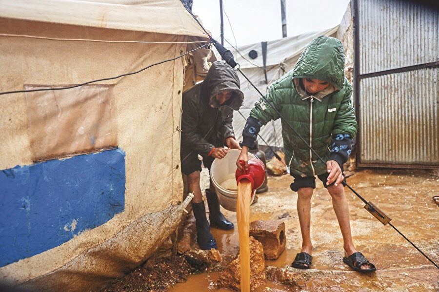 Suriye’nin İdlib kentindeki kamplar, zorlu hava şartlarına yenildi. Çadırlara dolan yağmur suları nedeniyle binlerce sivil dışarıda kaldı. Gıda ve ilaç eksikliği ile mücadele eden mülteciler, bu kez kış mevsimin ağır koşulları altında çadırlarını dahi kaybetmenin zorluğu ile baş başa kaldı. Kamp sakinlerine yardım ulaştırmaya çalışan Suriye Müdahale Koordinatörleri Teşkilatı, yağmurdan etkilenen kampların sayısının 145 kamp olduğunu duyurdu. Ayrıca bazı kamplara giden yolların tamamen kapandığı ve orada yaşayan insanların akıbetlerinin bilinmediği belirtildi.