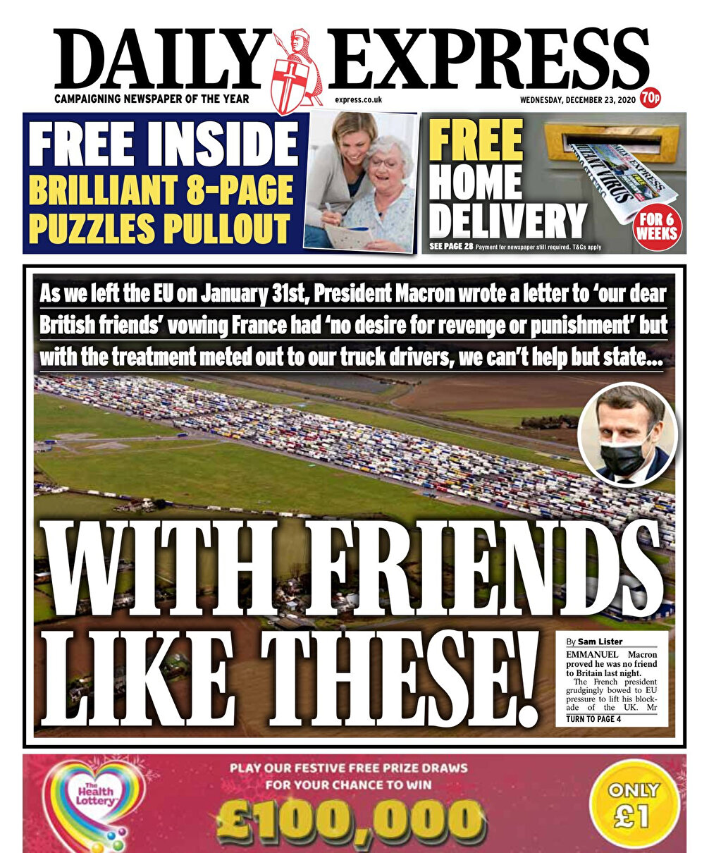 İngiltere'de mutasyona uğrayan virüs nedeniyle birçok ülke sınırlarını kapattı. Fransa ve İngiltere arasındaki sınırların kapanmasıyla binlerce tır İngiltere sınırında uzun kuyruklar oluşturdu. Ancak sınırların kapanması iki ülke arasında krize neden oldu. İngiliz gazeteleri sınırda tutularak Fransa'ya alınmayan tırları manşetlerine taşıyarak "Böyle dost varken düşmana gerek yok" başlıkları attı.