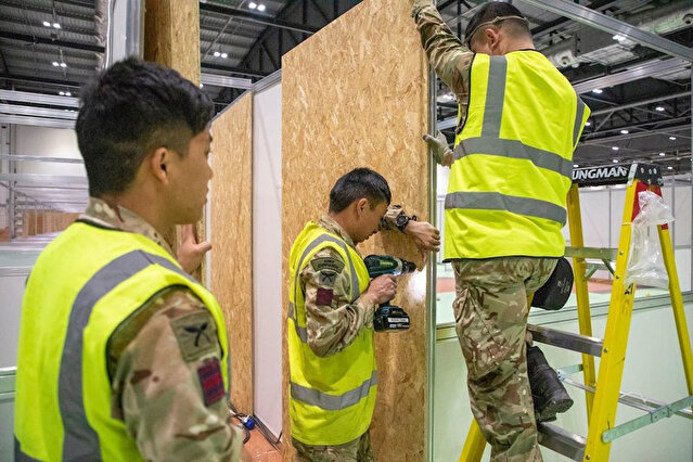 İngiltere'de artan koronavirüs salgını orduyu harekete geçirdi. Birleşik Krallık Silahlı Kuvvetleri, başkent Londra'da kongre merkezi London ExCel’i geçici hastaneye çevirmek için çalışmalara hız verdi.