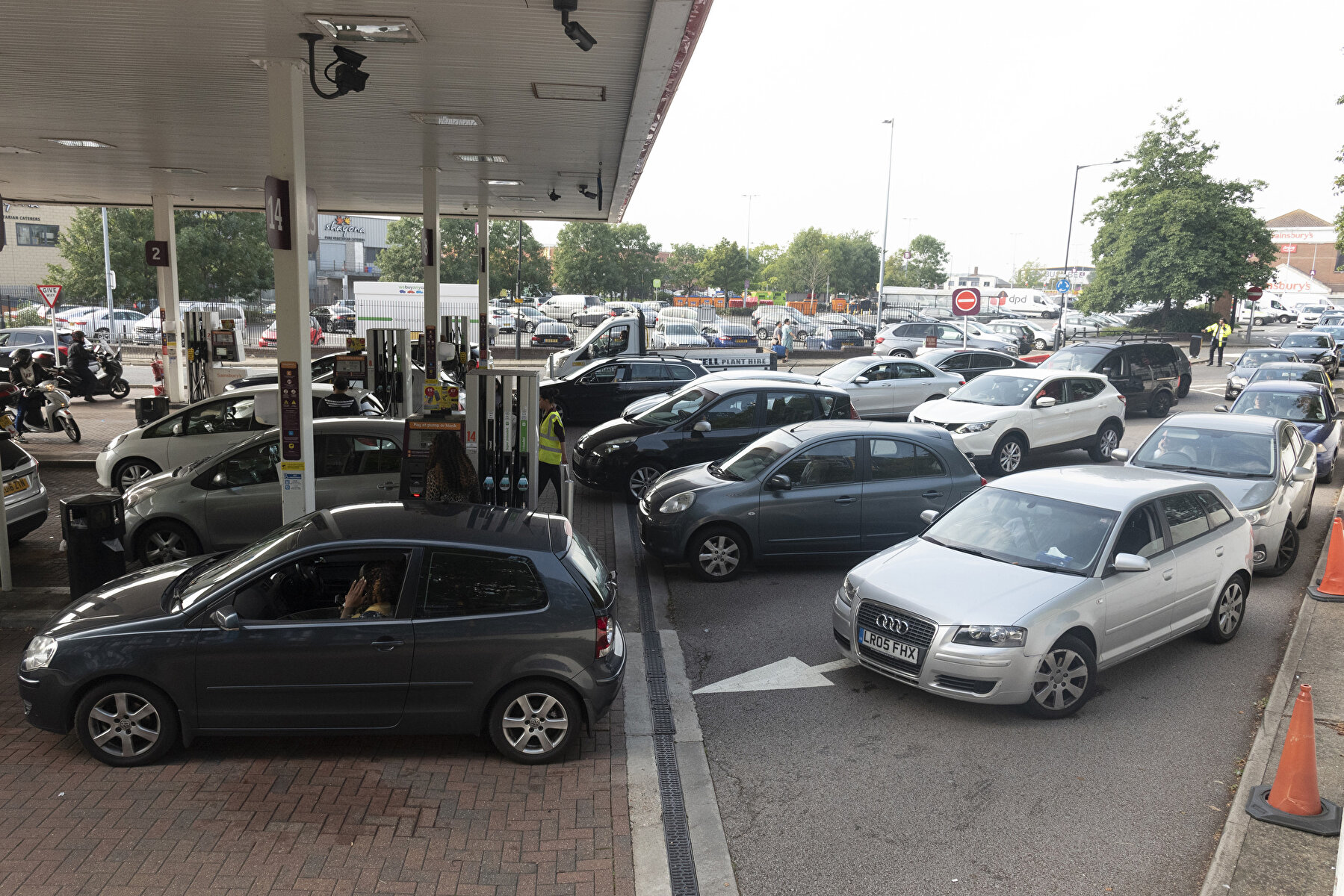 İngiltere'de şoför eksikliğinden tedarik yapılamadığı için ülke genelinde benzin istasyonlarında 'panik halde benzin almak isteyenler' uzun kuyruklar oluşturmuş, çoğu benzin istasyonu stokların tükenmesi nedeniyle pompaları kapatmıştı.