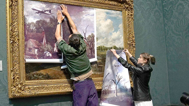 İngiltere'nin başkenti Londra'da iki iklim aktivisti, kendini Ulusal Galeride yer alan ünlü bir John Constable tablosuna yapıştırdı. Ulusal Galeriden yapılan açıklamaya göre tablonun duvardan kaldırıldığı ve çerçevesinin küçük bir hasar gördüğü bildirildi.