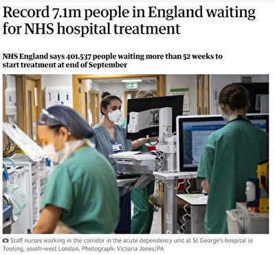 İngiliz The Guardian Gazetesi'nde "Record 7.1m people in England waiting for NHS hospital treatment" başlığıyla yayınlanan haberde İngiltere'nin sağlık sisteminde yaşanan çöküşe yer verildi.
