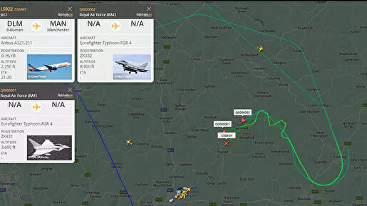 İngiliz basınında yer alan haberlere göre, bomba ihbarı nedeniyle Stansted Havalimanı'na yönlendirilen yolcu uçağına, 2 İngiliz Typhoon savaş uçağı eşlik etti.