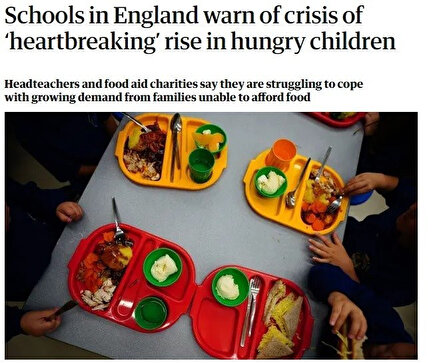 İngiltere'de pek çok okulda 'aç çocuk' sayısının yürekleri burkacak şekilde çoğaldığından söyleyen haberde ailelerin evlerini ısıtmak ya da yiyecek satın almak konusunda seçim yapmak zorunda kaldıklarından bahsedildi.