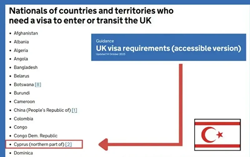 İngiltere'nin resmi vize sorgulama portalında ülke seçenekleri arasına “Kıbrıs (Kuzey kısmı)” ifadesinin eklenmesi, Yunanistan ile Güney Kıbrıs yönetiminin sert tepkisine yol açtı.