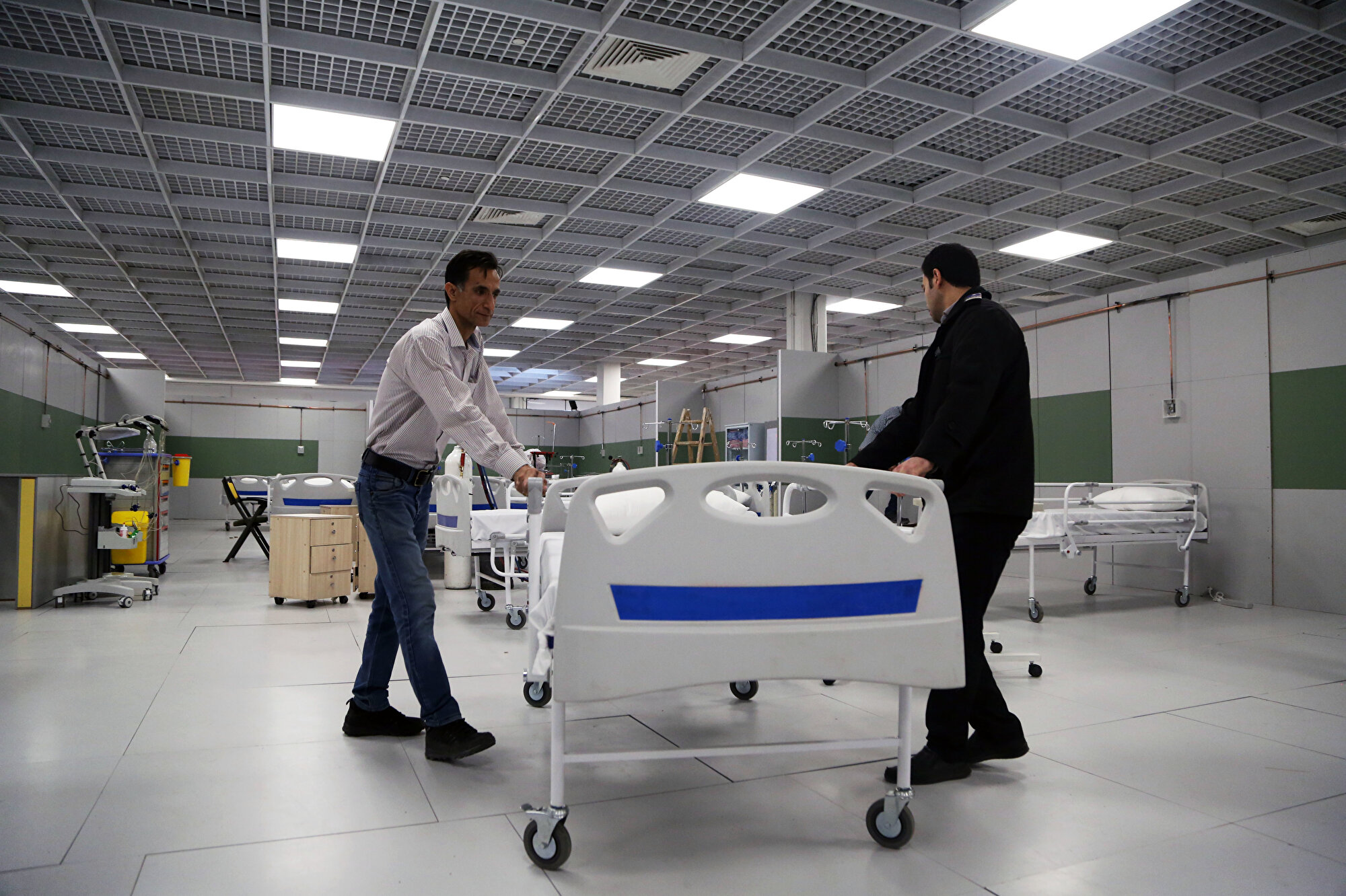 İran'daki hastaneler yeni tip koronavirüs (Kovid-19) salgınında yetersiz kalınca fuar alanları ve spor salonları geçici olarak hastaneye dönüştürülüyor.