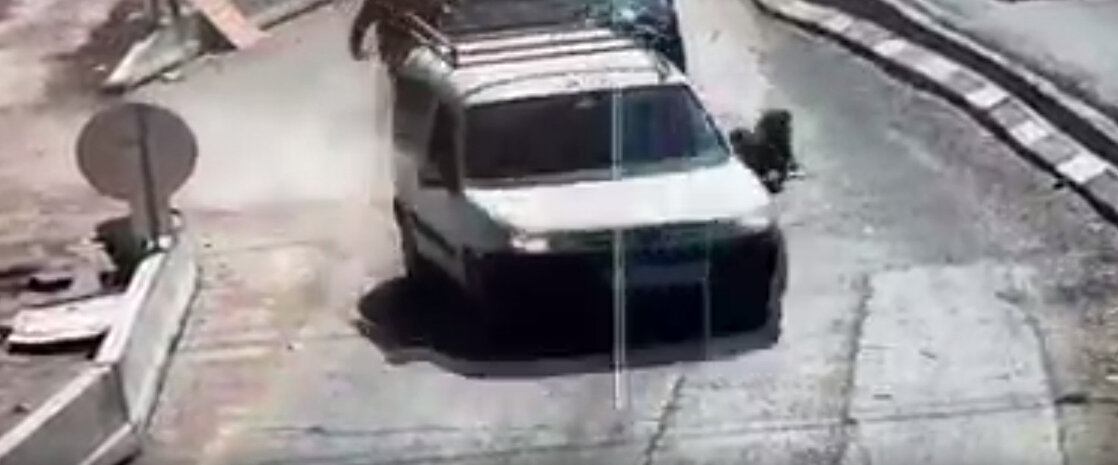 Sosyal medya platformlarında yayılan güvenlik kamerası kayıtlarında da, arabasıyla kontrol noktasından kaçan Filistinli sürücünün İsrail polisinin silahını çekerek onu yere düşürdüğü ve peşinden sürüklediği görüldü.