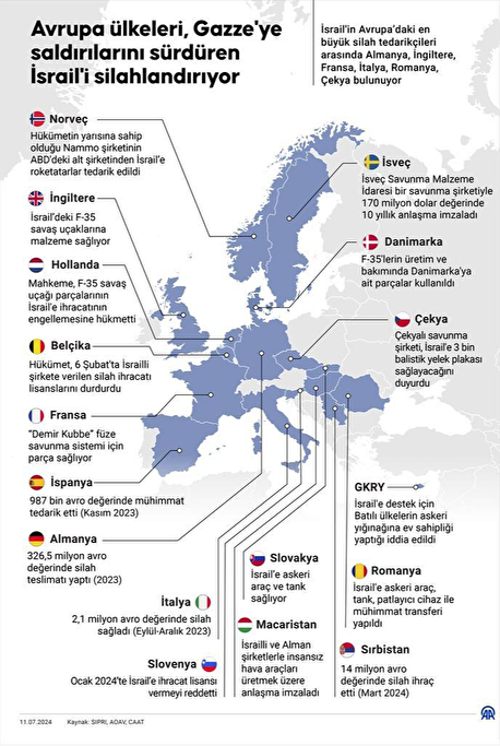 Gazze'ye saldırılar nedeniyle Belçika, İtalya, Hollanda ve İspanya'nın da aralarında olduğu bazı Avrupa ülkeleri, İsrail ile silah anlaşmalarını durdurma kararı alsa da bu ticaretin gizli bir şekilde sürdüğüne dair haberler basında büyük yankı yaptı.