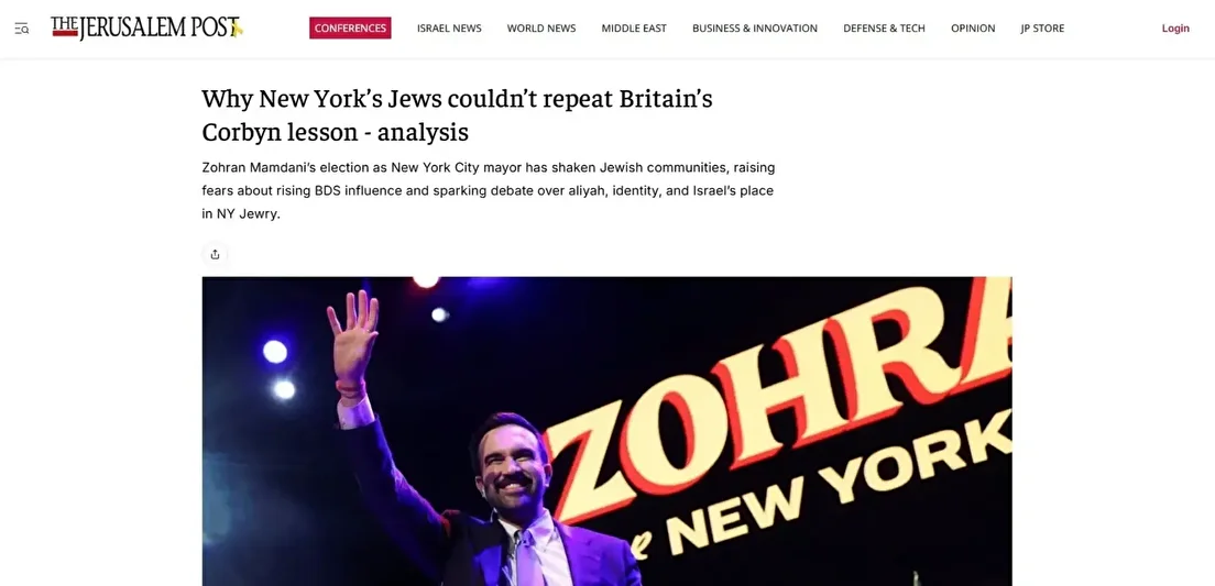 The Jerusalem Post Baş Editörü Zvika Klein, kaleme aldığı yazıda Mamdani’nin seçilmesinin ABD’deki Yahudi toplumu içinde “uzun süre konuşulacak bir gelişme” olacağını savundu.
