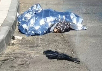 Filistinli kızın şehit olmasının ardından bir işgalci yerleşimci, silahını genç kızın hemen önüne bırakarak fotoğrafladı. Bu kare "Filistinli silahlı saldırgan" denilerek servis edildi.