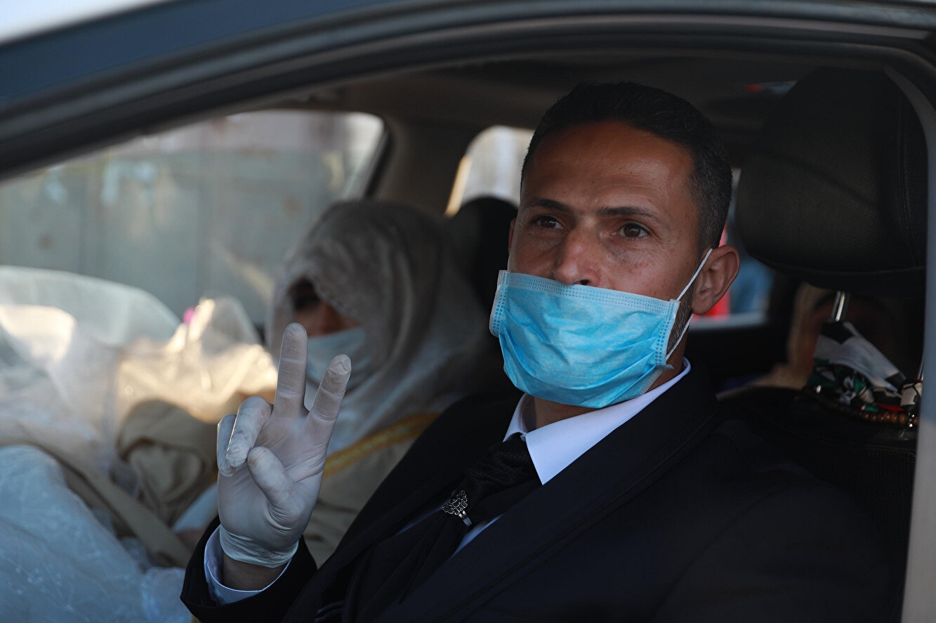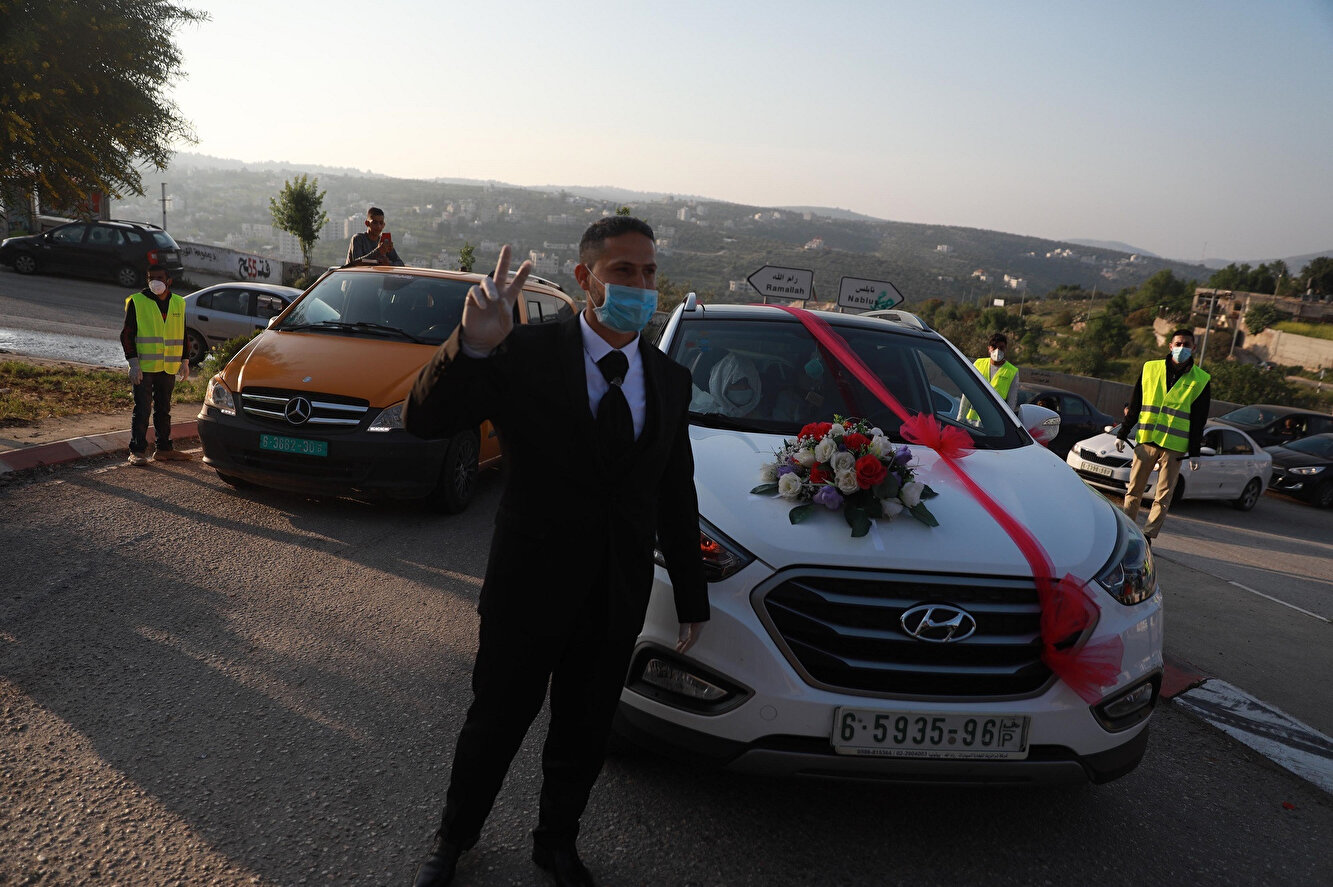 İsrail hapishanelerinde 15 yılını geçiren Filistinli genç Rafi Kasım, sevdiği kızla yıllar sonra yeni tip koronavirüs gölgesinde cerrahi maske takarak evlendi.
