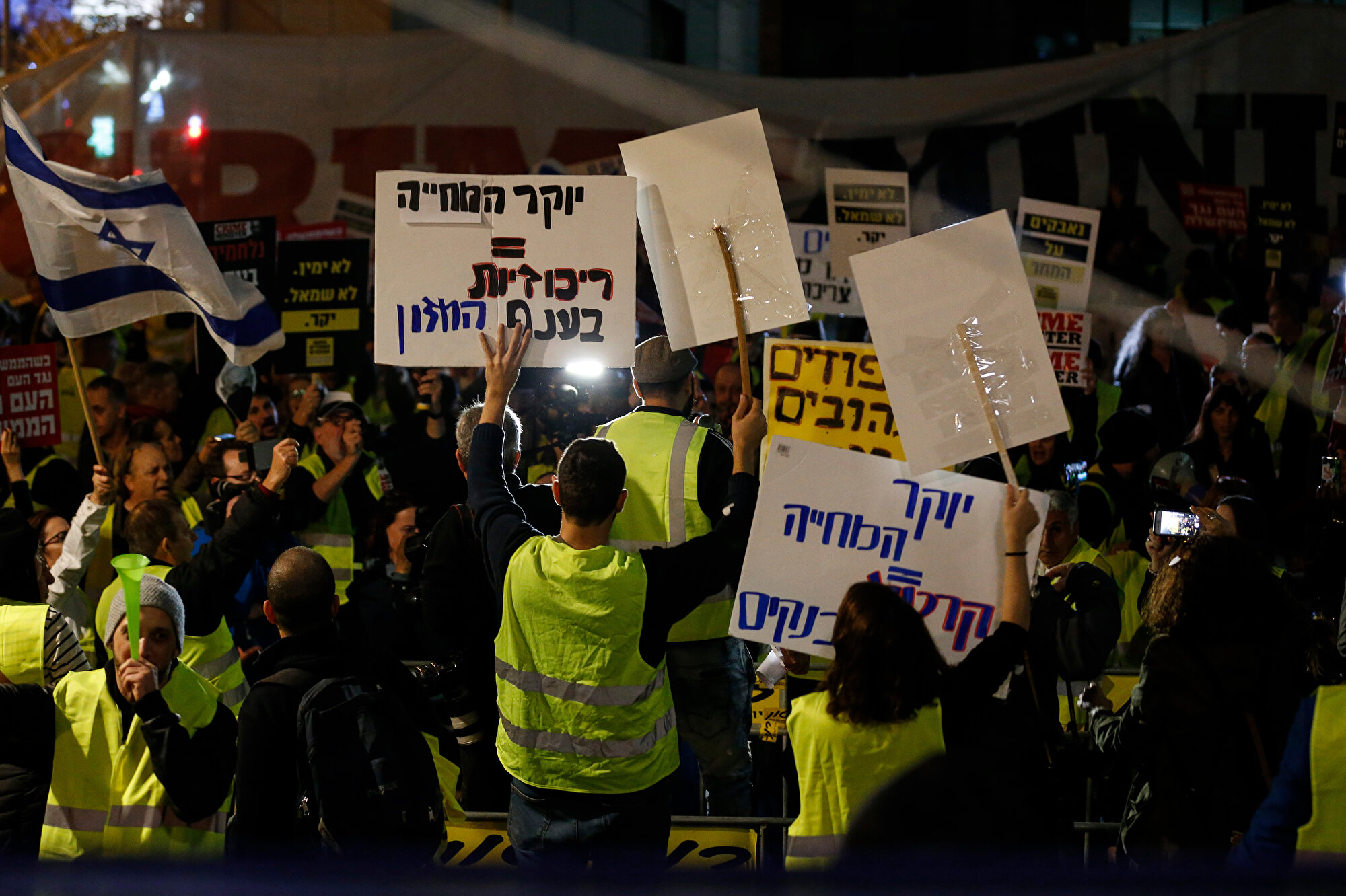 Başkent Tel Aviv'de toplanan yaklaşık 300 "sarı yelekli" protestocu, hayat pahalılığı nedeniyle hükümeti hedef alan sloganlar attı.