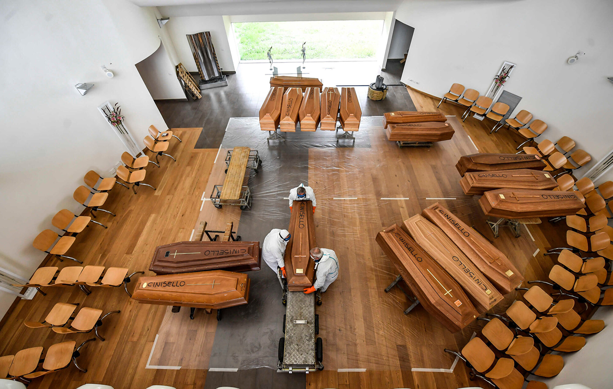 Belediye cenaze işlerinde görevli 25 kişinin yarısının Kovid-19'a yakalanması nedeniyle cenazelerin bir kısmının Roma'nın kuzeyinde bir mezarlık deposunda bekletildiği belirtildi.
