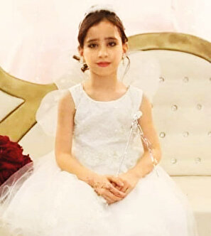 12 yaşındaki Rafef Ebudayer bir düğünde giydiği güzel elbisesiyle pozlar vermişti. Ancak babasına ona son kez cenazesini kucağına alırken sarılabildi.
