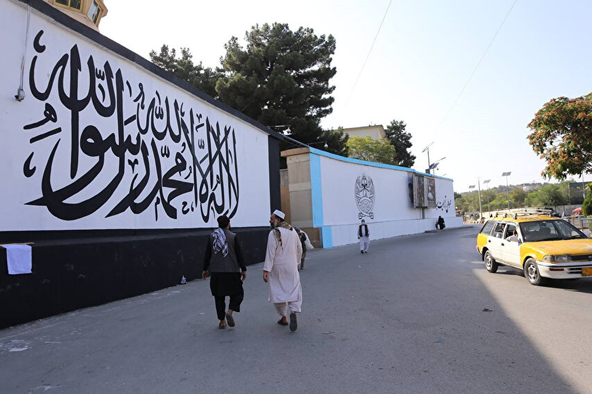 Afganistan’ın başkenti Kabil’de ABD’nin terk ettiği büyükelçilik binasının duvarına Taliban bayrağı resmedildi. Kabil'deki Hamid Karzai Uluslararası Havalimanı'na giden ana cadde üzerindeki Mesud kavşağı üzerinde bulunan ABD'nin Kabil Büyükelçiliğinin duvarları önce beyaza boyandı sonra Taliban lehine yazı ve motiflerle süslendi.