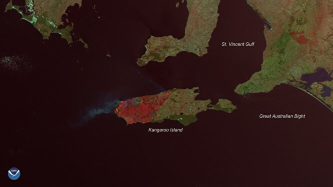 Adanın yangından önce 16 Aralık 2019’da çekilen fotoğrafını ve 7 Ocak 2020’de çekilen fotoğrafını yayınlayan NASA, adanın kısa bir süre içerisinde içler acısı hale geldiğini, adada sadece orman yangını trajedisinin yaşanmadığını ekolojik bir trajedinin yaşandığını ifade etti.