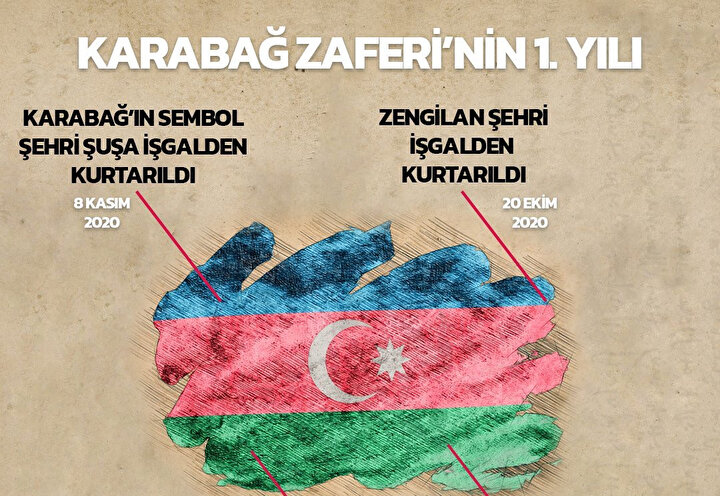 Ermenistan'ın 30 yıllık işgaline son vererek Azerbaycan'ı eski topraklarına geri kavuşturan Karabağ'ın kurtuluşunun birinci yıl dönümüne girildi.