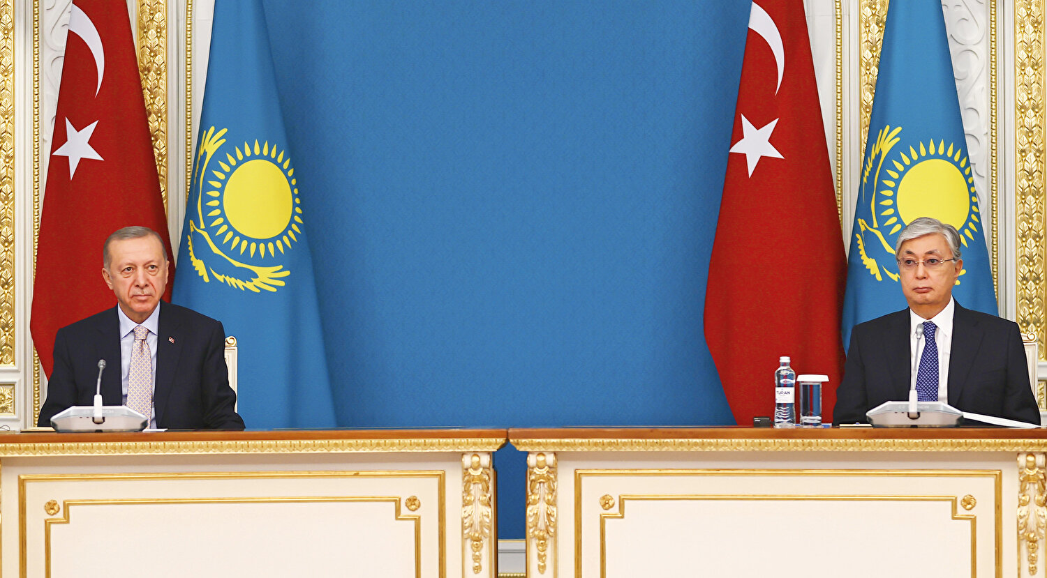 Kazakistan’da mevkidaşı Kasım Cömert Tokayev ile ortak basın toplantısı düzenleyen Cumhurbaşkanı Tayyip Erdoğan, iki ülke arasındaki 10 milyar dolarlık ticaret hedefine emin adımlarla yürüdüklerini söyledi. Mayıs ayında 14 anlaşmaya imza attıklarını hatırlatan Erdoğan, “Şimdi de burada artı 6 anlaşma, toplamda 20 anlaşmayı böylece imzalamış olduk” dedi.