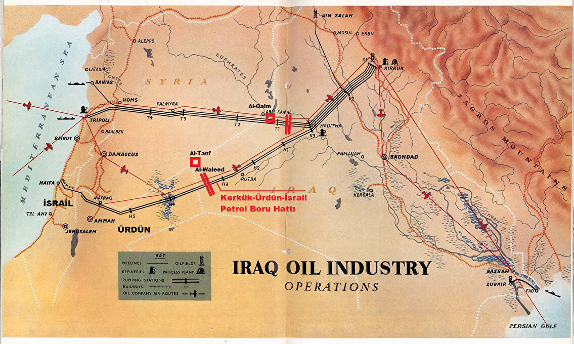 Son gelişmeler, 1934’te çizilen petrol boru hattı güzergâhının hayata geçirilmesini öngören sömürü planlarının tıkır tıkır işletildiğini de ortaya koydu. Yeni Şafak, bundan 2 yıl önce 4 Ekim 2017’de Amerika’nın İsrail’e uzanan petrol hattı planını “Kerkük’ten Hayfa’ya İsrail Planı” başlıklı manşet haberiyle gündeme taşımıştı. 85 yıllık sömürü planı uyarınca, Deyrizor’dan gelip rejim ve PKK hakimiyet sahalarının tam ortasından geçerek Ebu Kemal’e ulaştırılacak petrol, burada boru hattına verildikten sonra Tanf’tan geçip Ürdün üzerinden İsrail’in Hayfa Limanı’na ulaşacak. Kerkük ve Deyrizor petrolü buradan da gemilerle batılı ülkelere götürülecek. Yıllarca atıl durumda kalan bu güzergâh Amerikan planlarının hayata geçirilmesi için en uygun takvimi bekliyordu. Amerika’nın asker çekeceğini açıklamasına karşın bölgeye yüzlerce TIR silah, mühimmat ve sistem sevk etmeye devam etmesi de, perde gerisindeki petrol sömürüsü odaklı İsrail planını hayata geçirmeye yönelik faaliyetler olarak görülüyor.